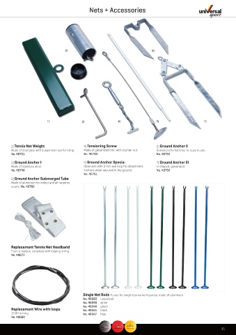 1) Tennis Net Weight 4) Tensioning Screw 6) Ground Anchor II